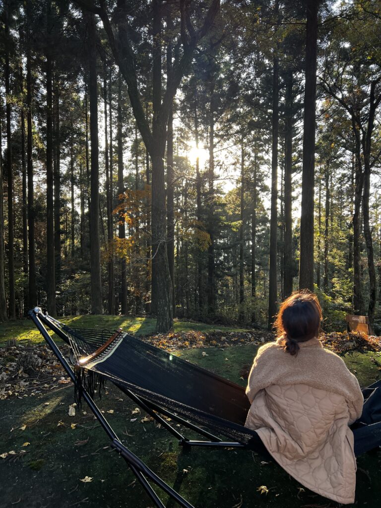 今回のツアーでは「五感で感じる、感情体験の旅」をテーマに、森の中でのサウナやサウンドバスヨガ、紅葉の美しい金鶏寺での座禅・写経体験など、諸塚村ならではの静寂を活かしたプログラムを実施。また、特産である原木椎茸狩りや、地域の旬をふんだんに取り入れた計4食のお食事を通して、村の豊かな文化と食をご堪能いただきました。